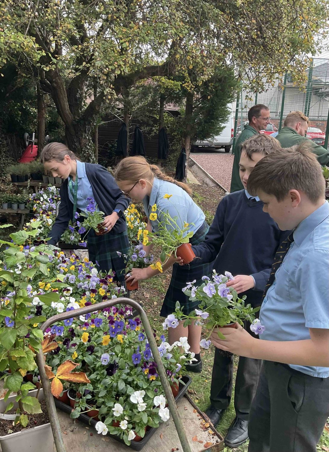 This week, we had our first practical session of the new Lower School Gardening Club, where we met up with the Head Gardener, Mr Malinowski and Assistant Head Gardener, Mr Godfrey. Under their expert guidance, we were tasked with creating four winter hanging baskets with a variety of plants and foliage – baskets which you may soon spot in the entrance to both Clock Block and the Science Block at the Senior School.